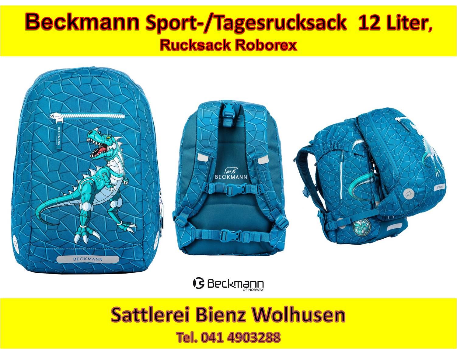 Beckmann Roborex Sportrucksack. Der leichte Turn- / Wanderrucksack fasst 12 Liter und ist ideal zum Wandern und für Tagesausflüge. Masse: B 260 x H 375 x T 140 mm. Gewicht: 350 g.