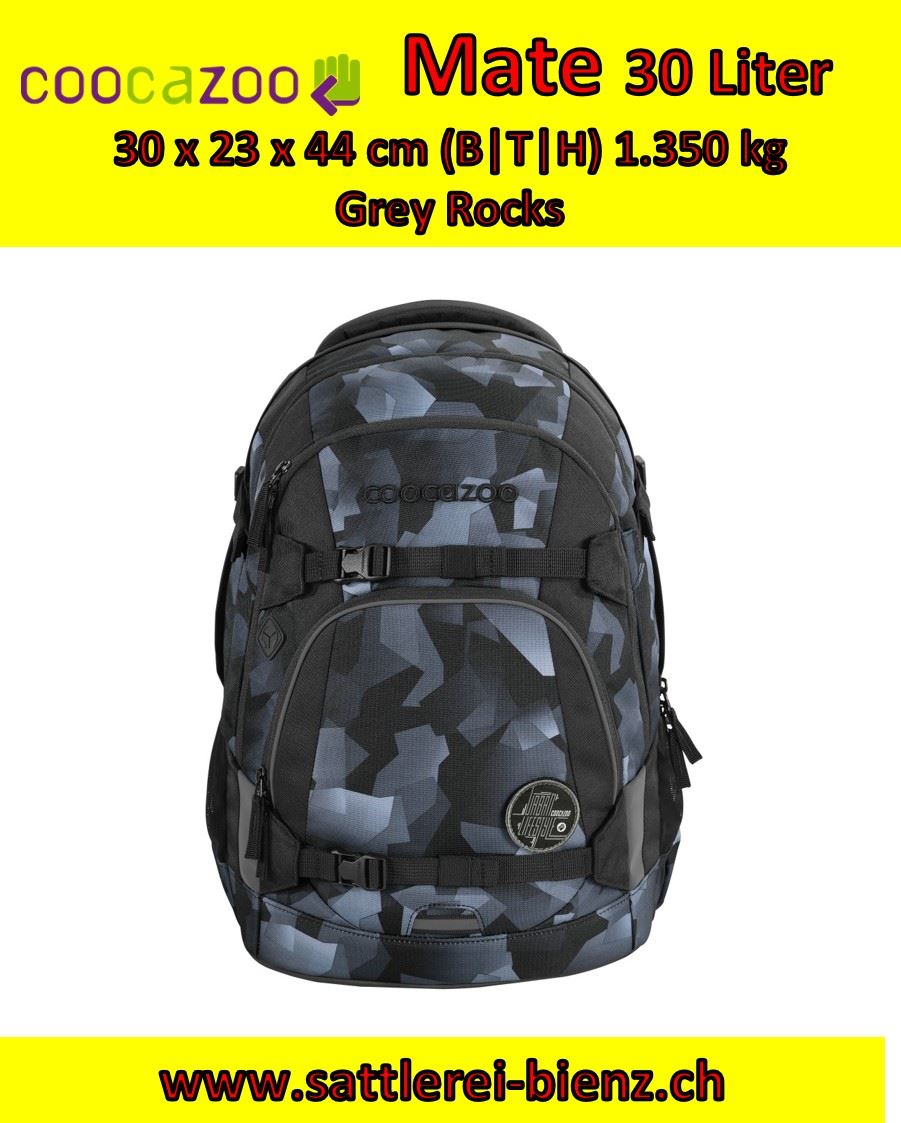 Coocazoo MATE Grey Rocks. Das kann der MATE: Mit einem Gewicht von 1.250 Gramm und 30 Litern Volumen ist der MATE der perfekte Allrounder für den Schulalltag. Mit dem EASY GROW SYSTEM wächst der MATE am Rücken deines Kindes mit und kann somit länger getragen werden. Hier erklären wir dir, wie's geht. Sein Innenleben ist in 4 unterschiedliche Fächer aufgeteilt; eines davon kann durch ein Tablet-/Laptop-Modul, für den digitalen Unterricht, erweitert werden.
