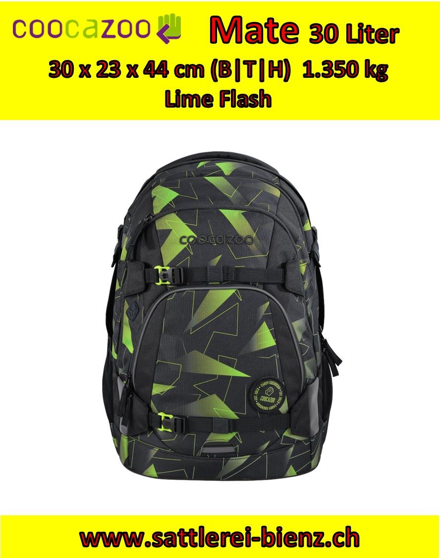 Coocazoo MATE Lime Flash. Das kann der MATE: Mit einem Gewicht von 1.250 Gramm und 30 Litern Volumen ist der MATE der perfekte Allrounder für den Schulalltag. Mit dem EASY GROW SYSTEM wächst der MATE am Rücken deines Kindes mit und kann somit länger getragen werden. Hier erklären wir dir, wie's geht. Sein Innenleben ist in 4 unterschiedliche Fächer aufgeteilt; eines davon kann durch ein Tablet-/Laptop-Modul, für den digitalen Unterricht, erweitert werden.
