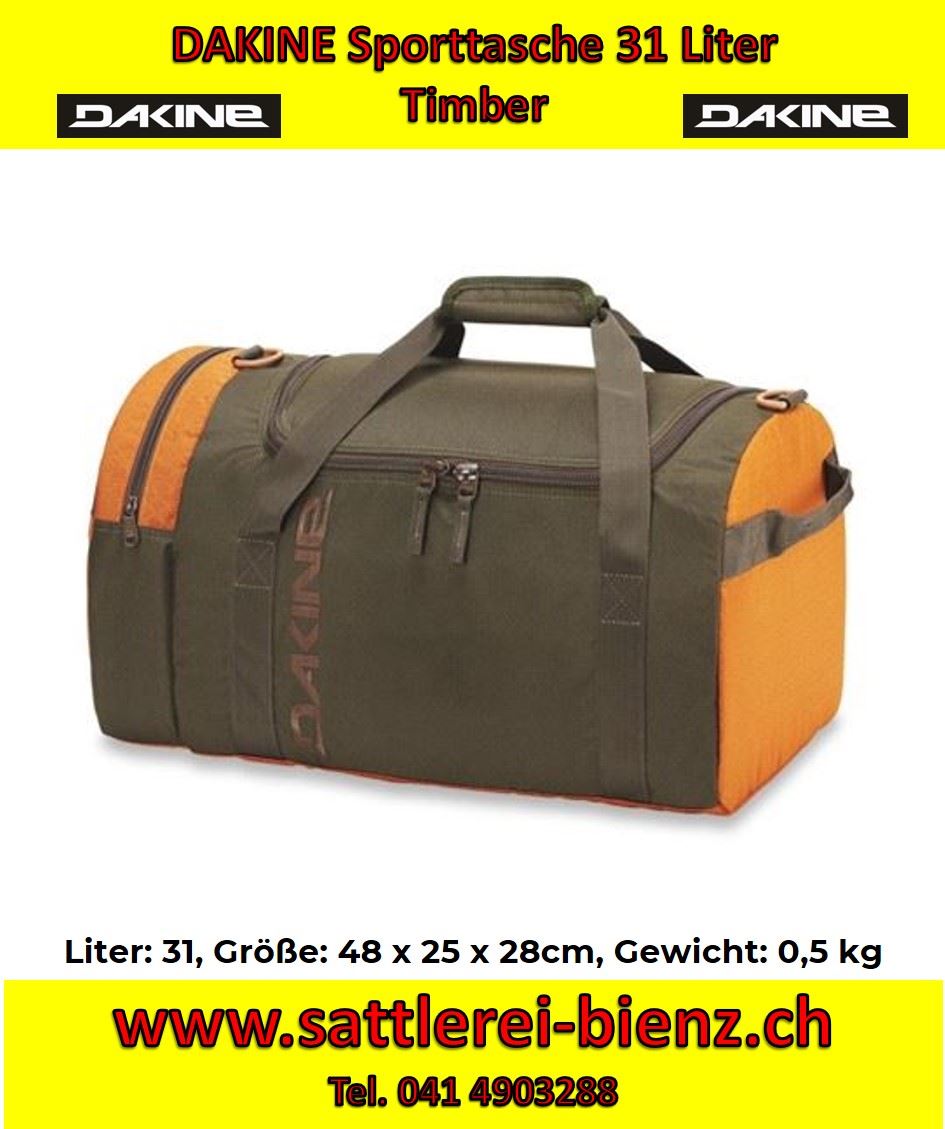 Dakine Timber EQ Bag 31L Sporttasche Liter EIGENSCHAFTEN U-förmige Öffnung zum leichten Zugriff Reißverschluss Endtasche Gepolsterte Schulterriemen Brillen Volume 1900 cu. in. [31 L] Größe 19 x 10 x 11 "[48 x 25 x 28cm] Gewicht 0,5 kg Materialien 600D Polyester