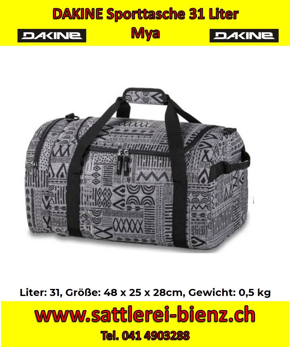 Dakine Mya Bag Sporttasche EQ 31 Liter EIGENSCHAFTEN U-förmige Öffnung zum leichten Zugriff Reißverschluss Endtasche Gepolsterte Schulterriemen Brillen Volume 1900 cu. in. [31 L] Größe 19 x 10 x 11 "[48 x 25 x 28cm] Gewicht £ 1,1. [0,5 kg] Materialien 600D Polyeste