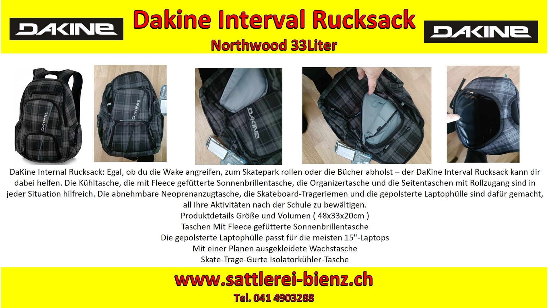 DaKine Interval Rucksack: Egal, ob du die Wake angreifen, zum Skatepark rollen oder die Bücher abholst – der DaKine Interval Rucksack kann dir dabei helfen. Die Kühltasche, die mit Fleece gefütterte Sonnenbrillentasche, die Organizertasche und die Seitentaschen mit Rollzugang sind in jeder Situation hilfreich. Die abnehmbare Neoprenanzugtasche, die Skateboard-Trageriemen und die gepolsterte Laptophülle sind dafür gemacht, all Ihre Aktivitäten nach der Schule zu bewältigen.Produktdetails Größe und Volumen ( 48x33x20cm Taschen Mit^Fleece gefütterte Sonnenbrillentasche Die gepolsterte Laptophülle passt für die meisten 15"-Laptops Mit einer Planen ausgekleidete Wachstasche Skate-Trage-Gurte Isolatorkühler-Tasche