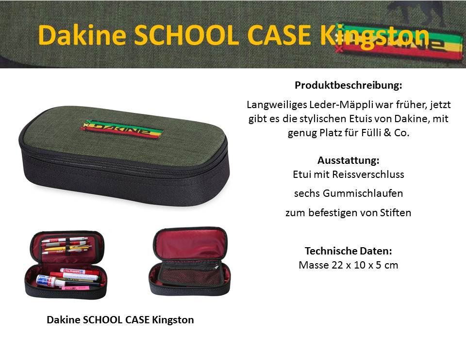 Dakine SCHOOL CASE Kingston Stylische Dakine Etuis mit genug Platz für Fülli & Co. Ausstattung Etui mit Reissverschluss sechs Gummischlaufen zum befestigen von Stiften Technische Daten Masse 22 x 10 x 5 cm