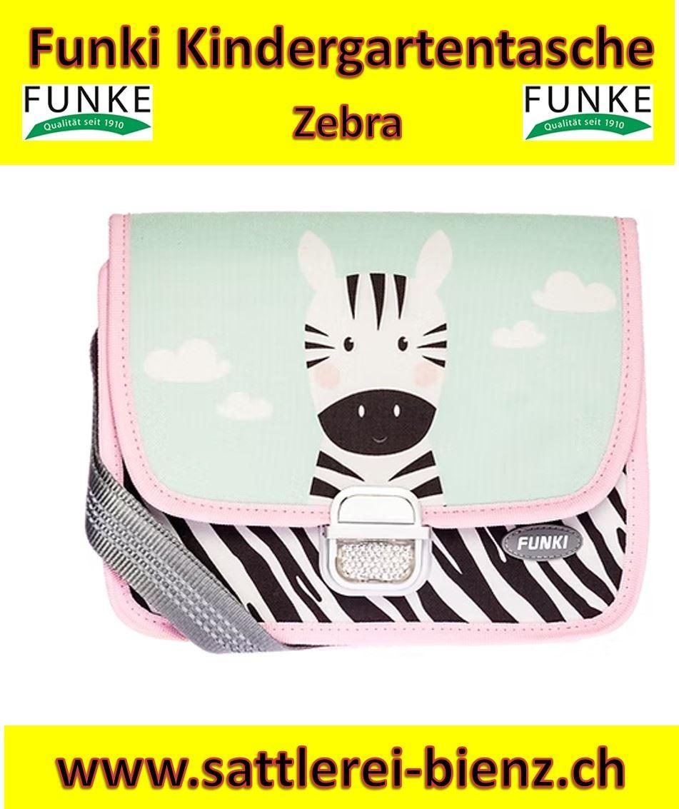 Funke Zebra Kindergarten-Tasche- Der Klassiker für den Kindergarten wurde neu überarbeitet. Die Kindergartentasche ist nun grösser und wurde mit einem reflektierenden und längenverstellbaren Tragegurt ausgestattet. Masse: 265 x 200 x 70 mm Gewicht: 205 Gramm