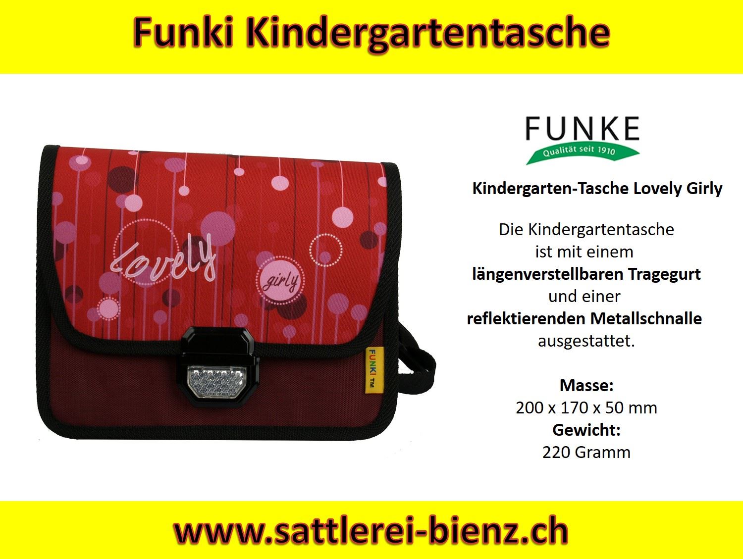 Funke Lovely Girly Kindergarten-Tasche. Die Kindergartentasche ist mit einem längenverstellbaren Tragegurt und einer reflektierenden Metallschnalle ausgestattet. Masse: 200 x 170 x 50 mm Gewicht: 220 Gramm