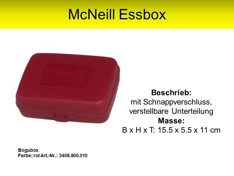 Mc Neill Essbox Farbe: rot Beschrieb: mit Schnappverschluss, verstellbare Unterteilung Masse: B x H x T: 15.5 x 5.5 x 11 cm