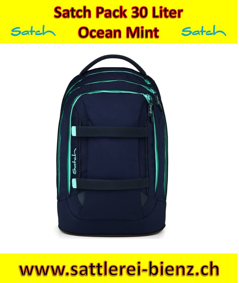 satch Pack Ocean Mint Schulrucksack 30 Liter. Maße ca.: 30x22x45cm, Hochwertige Lederapplikationen Volumen ca. 30l, Gewicht ca. 1,2 kg Material: recycled PET Herstellergarantie: 2 Jahr. UVP 169.00Fr.