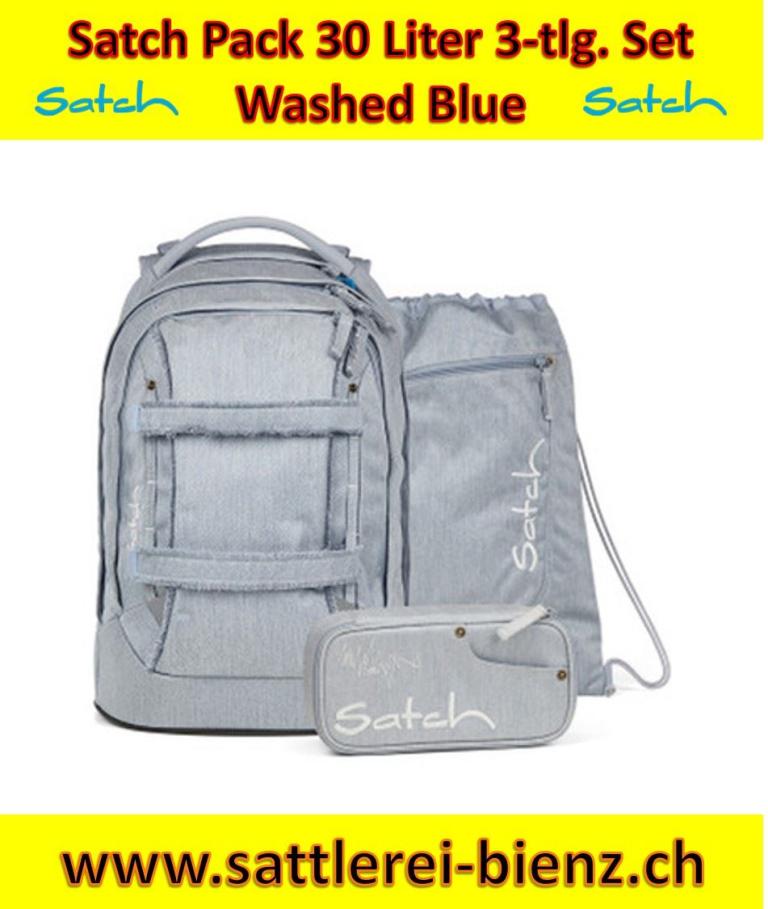 satch Washed Blue 3-tlg. Set Limited Edition case Rucksackk 30 Liter. Maße ca.: 30x22x45cm, Volumen ca. 30l, Gewicht ca. 1,2kg Material: recycled PET Herstellergarantie: 2 Jahre Das Schulrucksack-Set besteht aus: Satch Pack SchulrucksackSatch SportbeutelSatch SchlamperboxSatch Pack Schulrucksack Set Denim Washed BlueDer Satch Pack - stylisch, smart und stark im Schulalltag Herstellergarantie: 2 Jahre