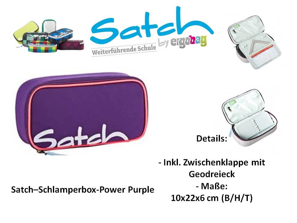 Satch Case Power Purple Schlamperbox Satch - Schlamperbox - Satch Schlampermäppchen wird mit einem Reißverschluss geöffnet und hat einen Stifteorganizer mit Stundenplan und Geodreiecktasche unter dem Deckel