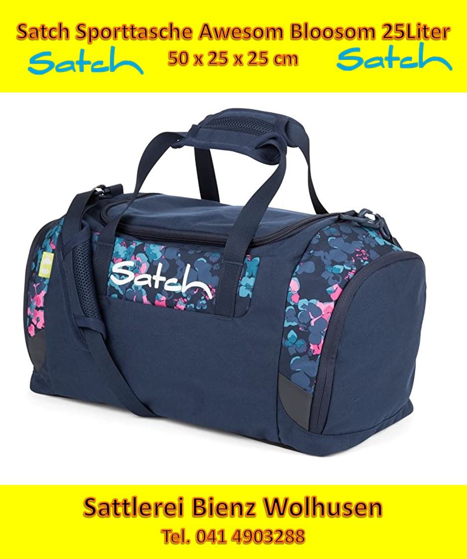 satch Awesom Bloosom Sporttasche. Die Turntasche mit Nassfach hat ein großes Hauptfach, zwei Seitentaschen und eine Reißverschluss-Vortasche. Die Satch Sporttasche kann entweder mit dem gepolsterten Schultergurt oder mit den mittleren zwei Schlaufen getragen werden. Masse: 45 x 25 x 25 cm 25 Liter