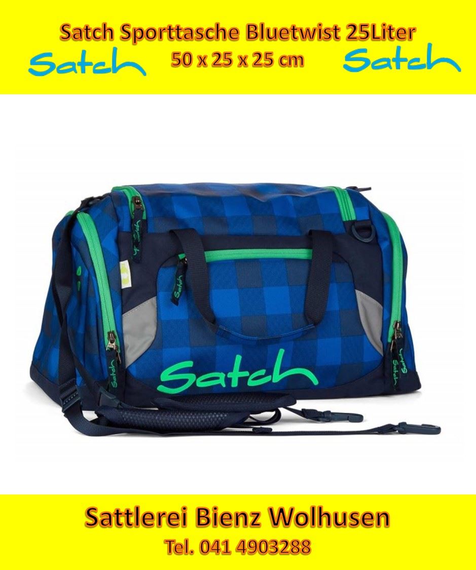 satch Bluetwist Sporttasche. Die Turntasche mit Nassfach hat ein großes Hauptfach, zwei Seitentaschen und eine Reißverschluss-Vortasche. Die Satch Sporttasche kann entweder mit dem gepolsterten Schultergurt oder mit den mittleren zwei Schlaufen getragen werden. Masse: 45 x 25 x 25 cm 25 Liter