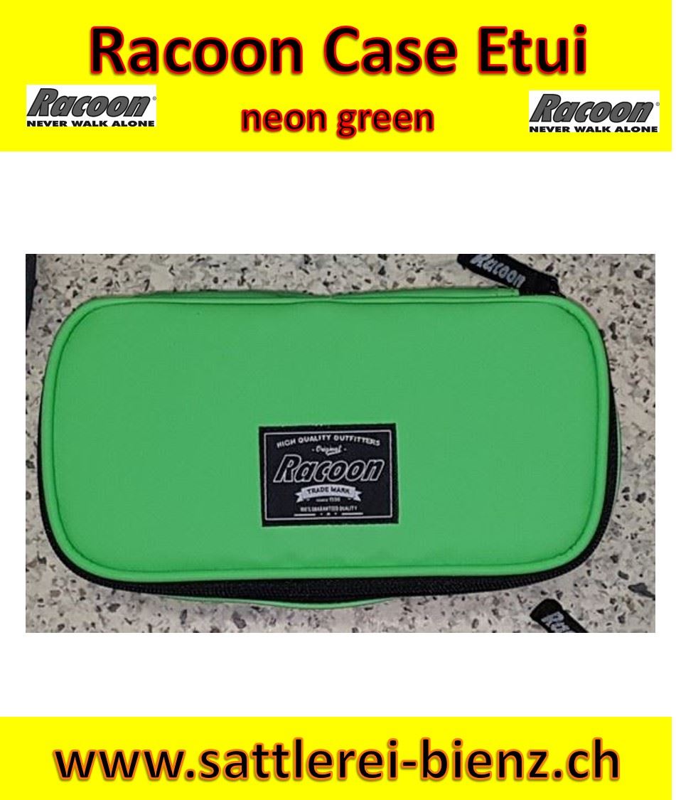 Racoon neon green Case Extra gross Racoon Extra grosse Ausführung Unterteilung Schlaufe für Schreibzeug.