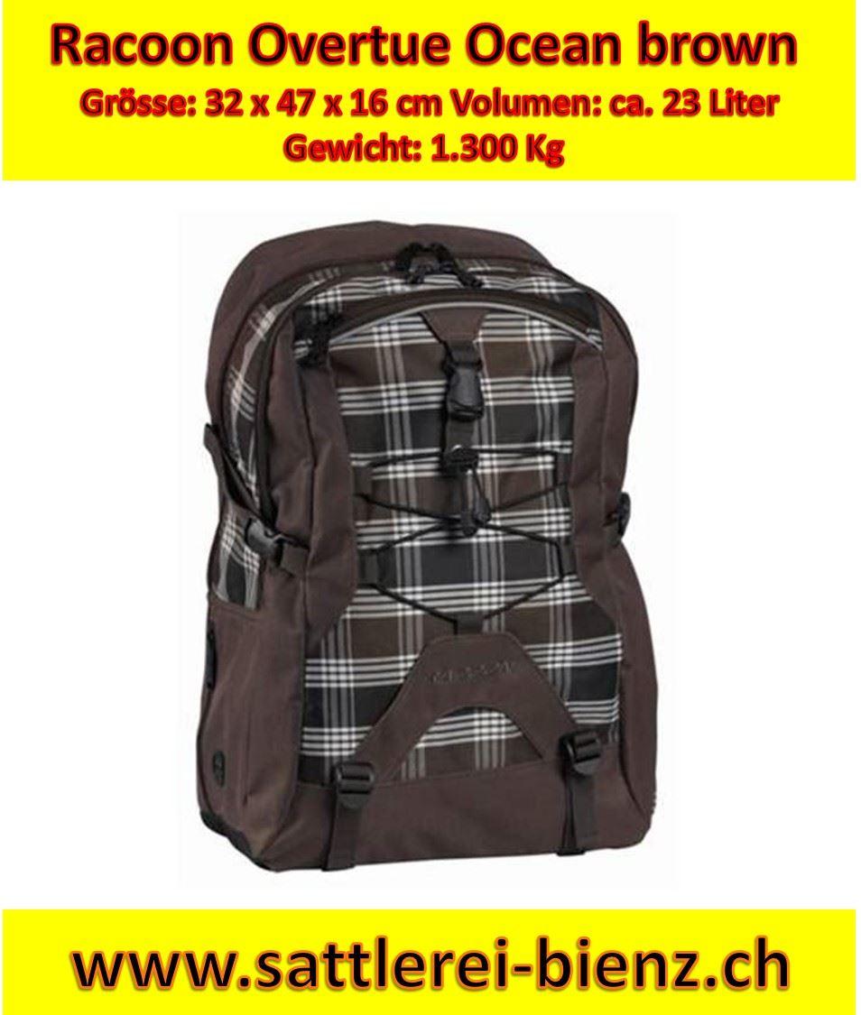 Racoon Overtue Ocean brown mit Reissverschluss-Öffnung - verstellbarer Brustgurt - zwei praktische Unterteilungen - spezielles Fache für Sonnenbrille - REFLEX PLUS für mehr Sichtbarkeit im Strassenverkehr bei Dämmerung und schlechten Sichtverhältnissen Grösse: 32 x 47 x 16 cm Volumen: ca. 23 Liter Gewicht: 1.300 Kg