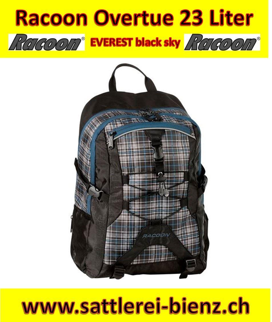 Racoon Overture EVEREST black/sky Rucksack mit Reissverschluss-Öffnung - verstellbarer Brustgurt - zwei praktische Unterteilungen - spezielles Fache für Sonnenbrille - REFLEX PLUS für mehr Sichtbarkeit im Strassenverkehr bei Dämmerung und schlechten Sichtverhältnissen Grösse: 32 x 47 x 16 cm Volumen: ca. 23 Liter schlechten Sichtverhältnissen Grösse: 30 x 44 x 15 cm (+ 10 cm) Volumen: ca. 32 Liter Gewicht: 1.300 Kg Artikelnummer:42.12357