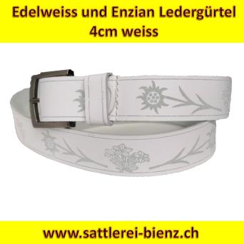 Edelweiss u. Enzian Ledergürtel 4cm weiss