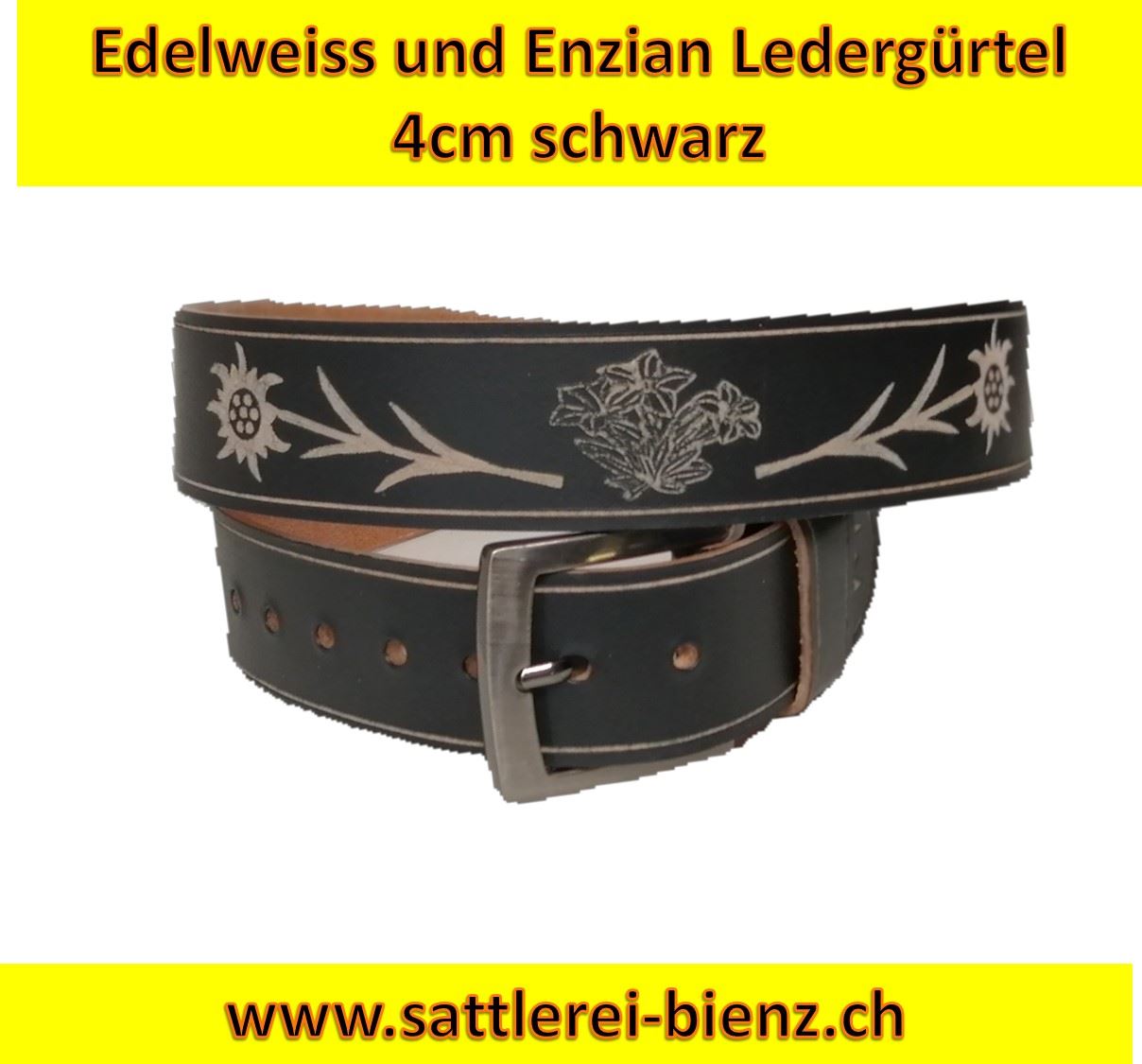 Ledergürtel 4cm mit Enzian und Edelweiss schwarz
