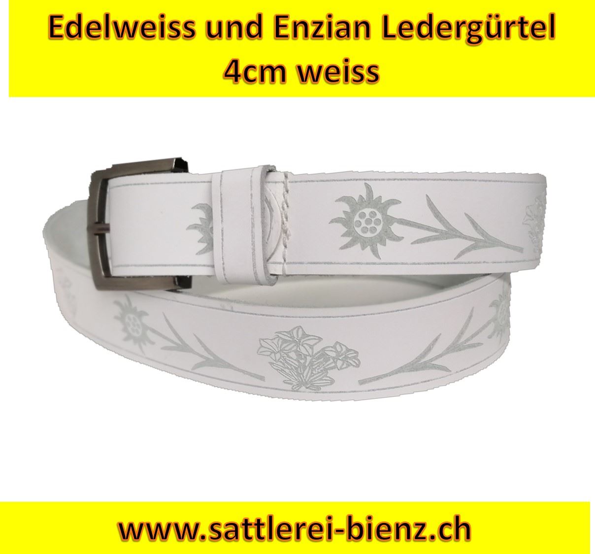 Ledergürtel 4cm mit Enzian und Edelweiss weiss 140cm Länge