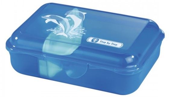 Step by Step Happy Dolphins Essbox Lunchbox mit Klickverschluss zum einfachen Öffnen und Schließen Deckel und Unterteil sind verbunden und können nicht verloren gehen garantiert schadstofffrei geruchs- und geschmacksneutral einfaches und komplettes Säubern spülmaschinengeeignet Volumen ca. 0,9 l